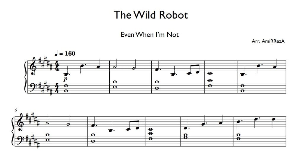 Hello guys, This is Sheet Music PDF for my piano cover of "THE WILD ROBOT - Even When I’m Not".